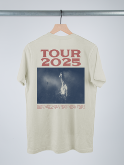 Dustin Lynch 2025 photo tour tee in natural with front and back print. Dates on the back may vary.Made of 100% airlume combed and ring-spun cotton.